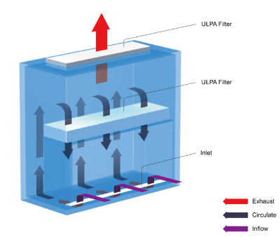 - Loại bộ lọc: Bộ lọc ULPA U15 tiêu chuẩn có khung nhôm, ISO Class 3 loại bỏ 99,9999% các hạt, Class 10 tuỳ chọn- Bộ lọc PTFE ULPA.