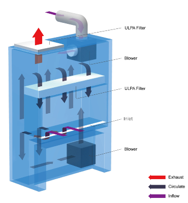 - Loại màng lọc: Bộ lọc ULPA U15 tiêu chuẩn có khung nhôm, ISO Class 3 loại bỏ 99,9999% các hạt, Class 10 tuỳ chọn- Bộ lọc PTFE ULPA.